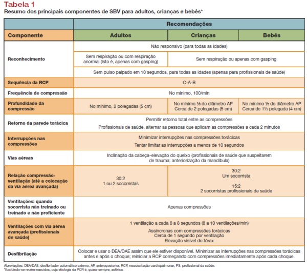 As novas Diretrizes da AHA, recomendam que exista uma alteração no processo A-B-C (via aérea, respiração e compressões torácicas) para C-A-B (compressões torácicas, via aérea e respiração) em procedimentos de Suporte Básico de Vida (SBV) em adultos, crianças e bebes (excluindo-se recém-nascidos).